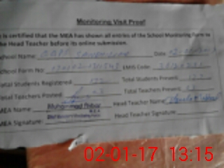 | Attendance Register | Head Teacher | MEA with School | Visit Proof |