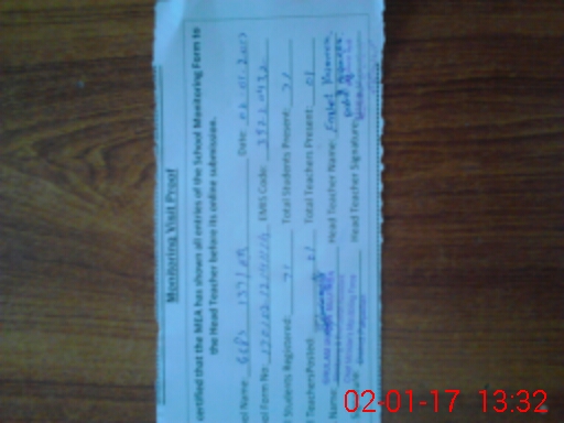 | Attendance Register | Head Teacher | MEA with School | Visit Proof |