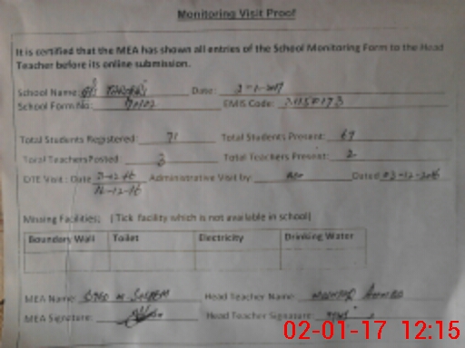 | Attendance Register | Head Teacher | MEA with School | Visit Proof |