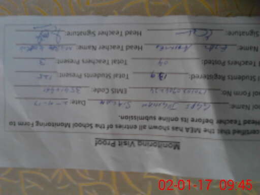 | Certified that this School was Inspected by the Undersigned MEA/DMO Today and the Information Stated Above is as Per Record. | |||||