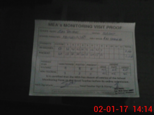 | Attendance Register | Head Teacher | MEA with School | Visit Proof |