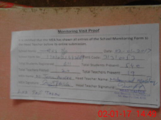 | Attendance Register | Head Teacher | MEA with School | Visit Proof |