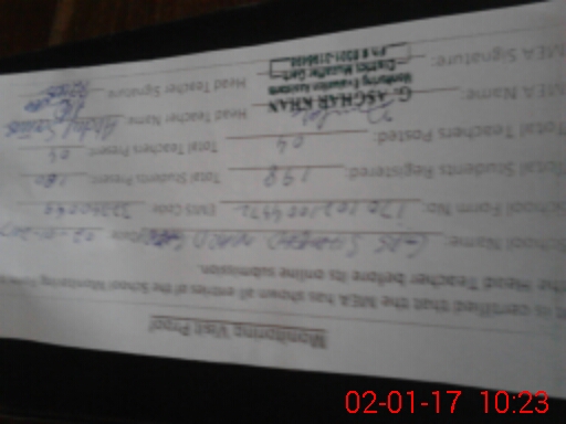 | Certified that this School was Inspected by the Undersigned MEA/DMO Today and the Information Stated Above is as Per Record. | |||||