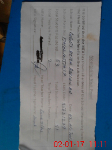 | Certified that this School was Inspected by the Undersigned MEA/DMO Today and the Information Stated Above is as Per Record. | |||||
