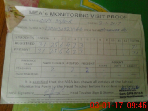 | Attendance Register | Head Teacher | MEA with School | Visit Proof |