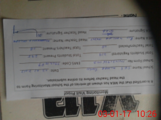 | Name: MU**** RI**** RA**** Designation: (School Headmaster's/Headmistress's) SST (Sc.) Phone/Cell Number: 03**** |
