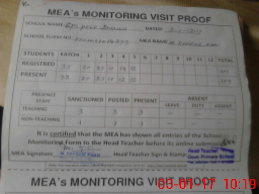 | Attendance Register | Head Teacher | MEA with School | Visit Proof |
