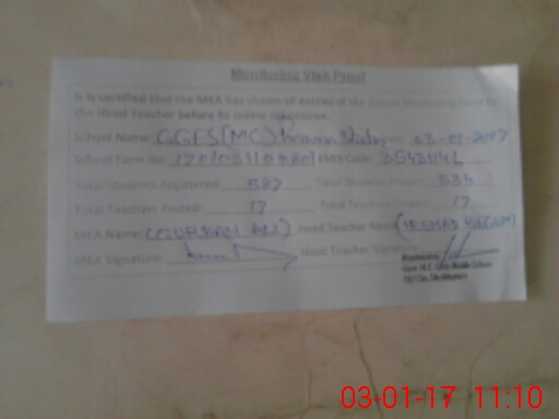 | EMIS Code: 35431146 | Name of School: GGES MC PURANA SHEHR | |||