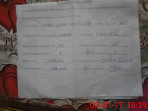 | EMIS Code: 33230752 | Name of School: GMPS CHAK NO. 500 JB | |||