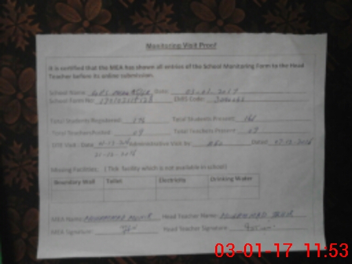 | Certified that this School was Inspected by the Undersigned MEA/DMO Today and the Information Stated Above is as Per Record. | |||||