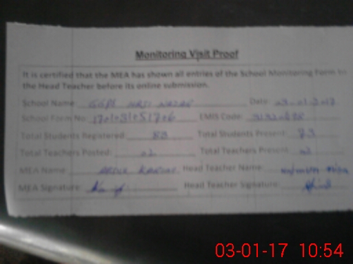 | Attendance Register | Head Teacher | MEA with School | Visit Proof |