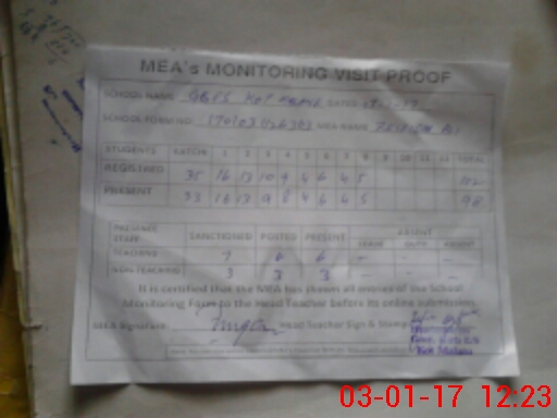 | Attendance Register | Head Teacher | MEA with School | Visit Proof |