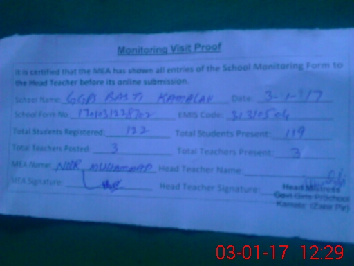| Attendance Register | Head Teacher | MEA with School | Visit Proof |