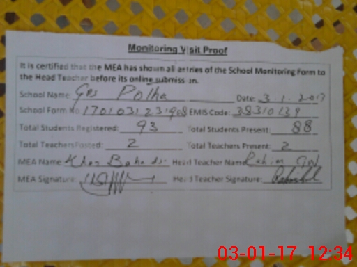 | Attendance Register | Head Teacher | MEA with School | Visit Proof |
