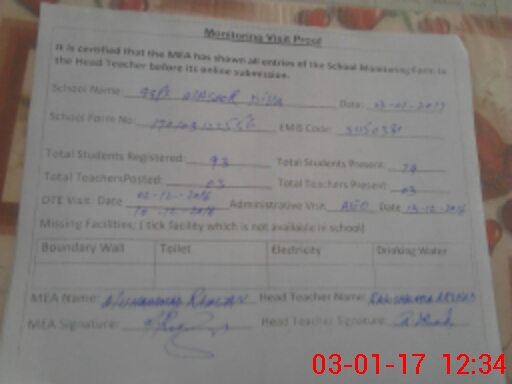 | Attendance Register | Head Teacher | MEA with School | Visit Proof |