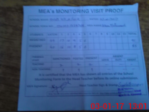 | Certified that this School was Inspected by the Undersigned MEA/DMO Today and the Information Stated Above is as Per Record. | |||||