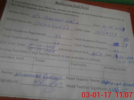 | EMIS Code: 31150179 | Name of School: GPS GADHEY WALA | |||