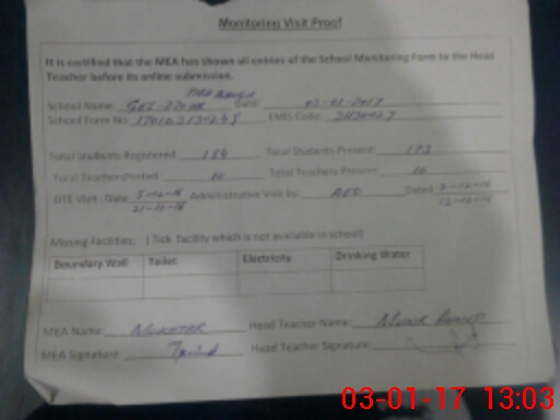 | Certified that this School was Inspected by the Undersigned MEA/DMO Today and the Information Stated Above is as Per Record. | |||||