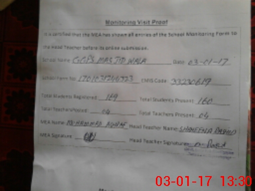 | EMIS Code: 33230619 | Name of School: GGPS MASJID WALA | |||