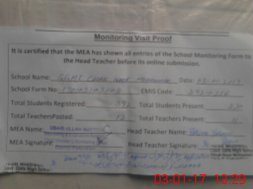 | EMIS Code: 39210356 | Name of School: GGHS CHAK NOOR MUHAMMAD 11/SP | |||