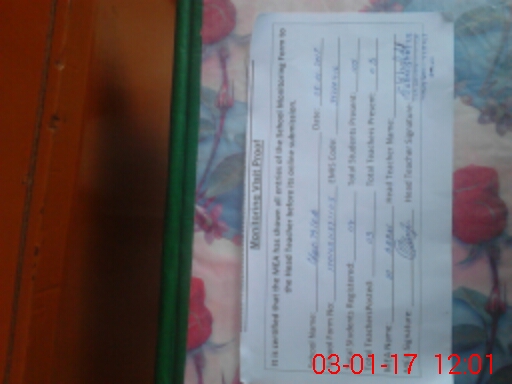 | School Visited by School Health & Nutrition Supervisor (No. of Visits) | 1 | Name1: | TAHERA MUBIN | Name2: | NIL |