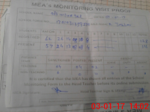 | Attendance Register | Head Teacher | MEA with School | Visit Proof |