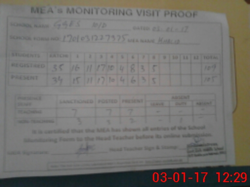 | Attendance Register | Head Teacher | MEA with School | Visit Proof |