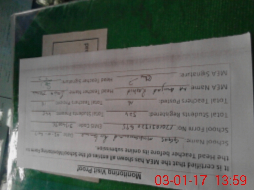 | Certified that this School was Inspected by the Undersigned MEA/DMO Today and the Information Stated Above is as Per Record. | |||||