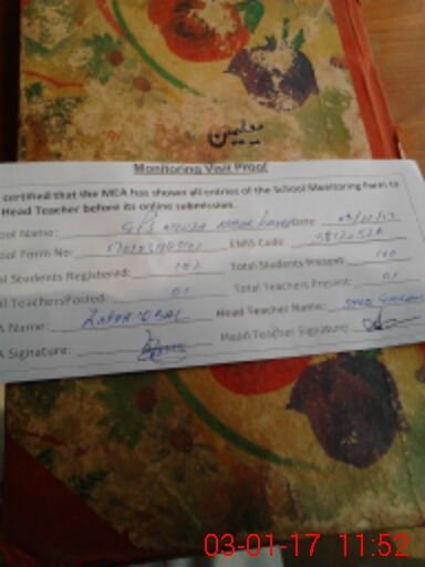 | Attendance Register | Head Teacher | MEA with School | Visit Proof |