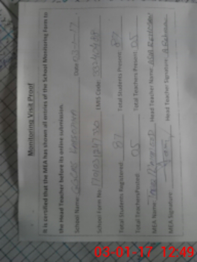 | Attendance Register | Head Teacher | MEA with School | Visit Proof |