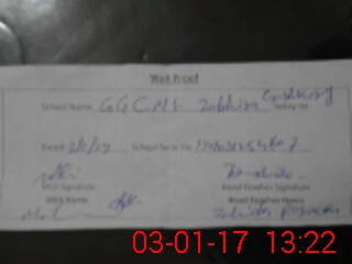 | School Visited by School Health & Nutrition Supervisor (No. of Visits) | 1 | Name1: | Mohammad Shreef | Name2: | |
