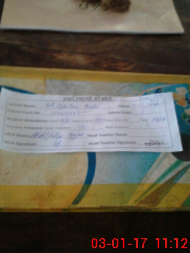| School Visited by School Health & Nutrition Supervisor (No. of Visits) | 1 | Name1: | Tariq Mustfs | Name2: | Nill |