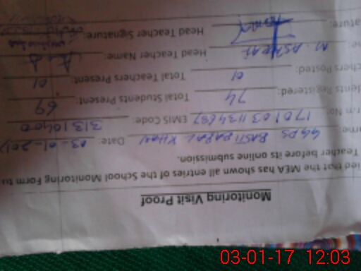 | Attendance Register | Head Teacher | MEA with School | Visit Proof |