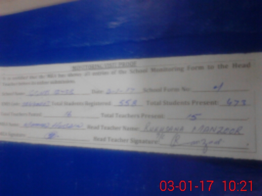 | Name: SA**** IR**** Designation: (School Headmaster's/Headmistress's) I/C PRINCIPAL Phone/Cell Number: 03**** |