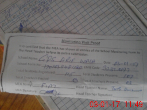 | EMIS Code: 32320197 | Name of School: GPS ARIF WALA | |||