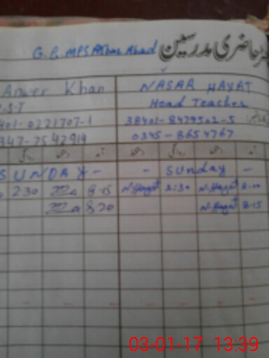| Name: Mu**** An**** Kh**** Designation: (School Headmaster's/Headmistress's) PST Phone/Cell Number: 03**** |