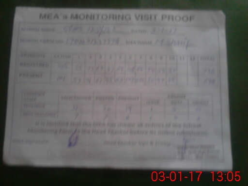 | Attendance Register | Head Teacher | MEA with School | Visit Proof |