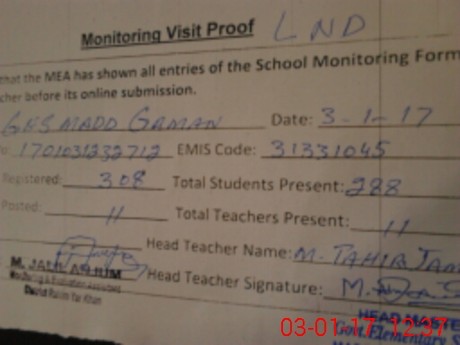 | EMIS Code: 31331045 | Name of School: GHS MADD GAMAN | |||