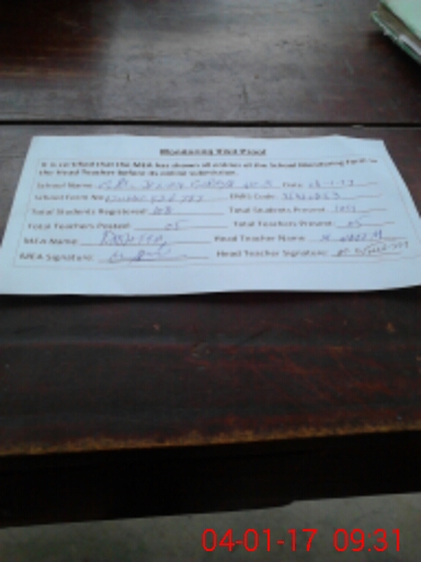 | Attendance Register | Head Teacher | MEA with School | Visit Proof |