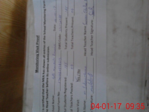 | Attendance Register | Head Teacher | MEA with School | Visit Proof |