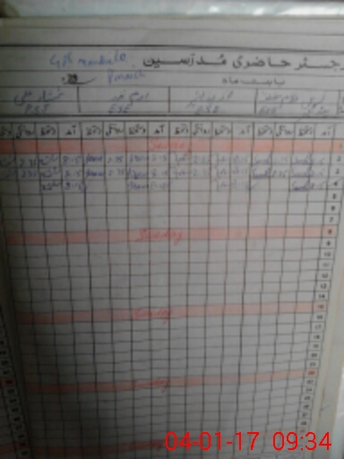 | CNIC | Full Name | Designation | R/C | Absence During Last Calender Month |