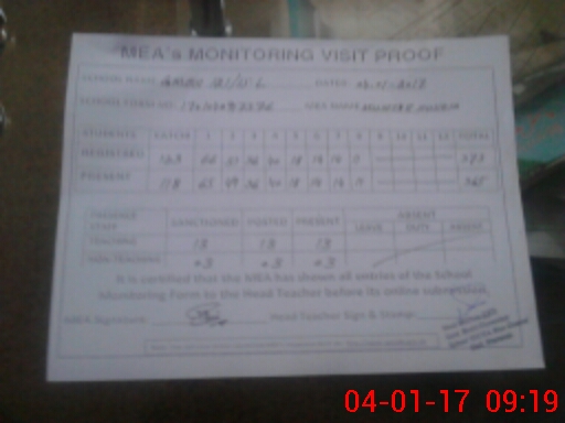 | Attendance Register | Head Teacher | MEA with School | Visit Proof |