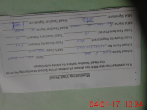 | Attendance Register | Head Teacher | MEA with School | Visit Proof |