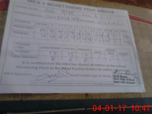 | Attendance Register | Head Teacher | MEA with School | Visit Proof |