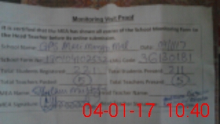 | Attendance Register | Head Teacher | MEA with School | Visit Proof |