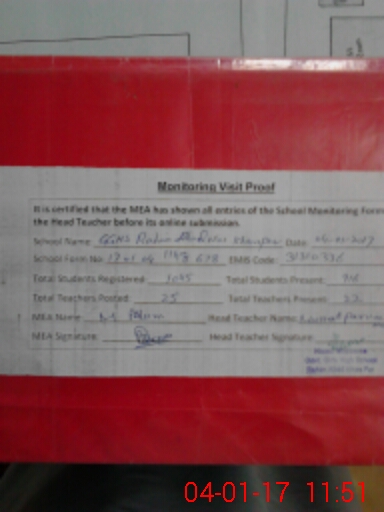 | Attendance Register | Head Teacher | MEA with School | Visit Proof |