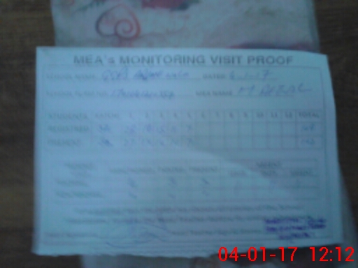 | Attendance Register | Head Teacher | MEA with School | Visit Proof |
