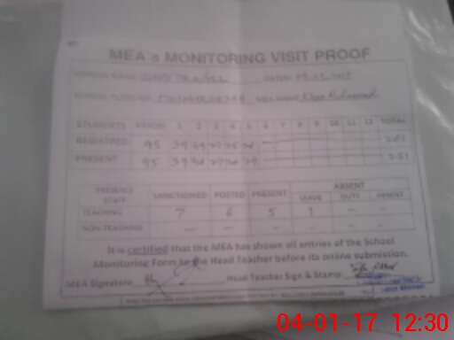 | Attendance Register | Head Teacher | MEA with School | Visit Proof |