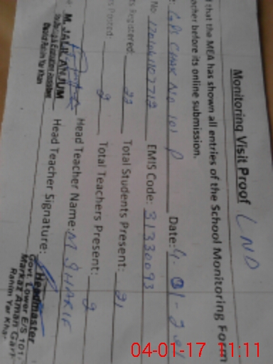 | Name: MU**** SA**** Designation: (School Headmaster's/Headmistress's) PST Phone/Cell Number: 03**** |