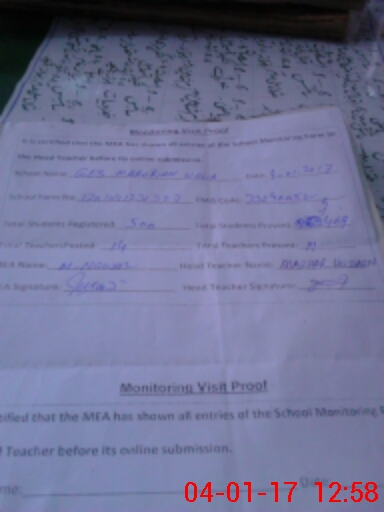 | Attendance Register | Head Teacher | MEA with School | Visit Proof |